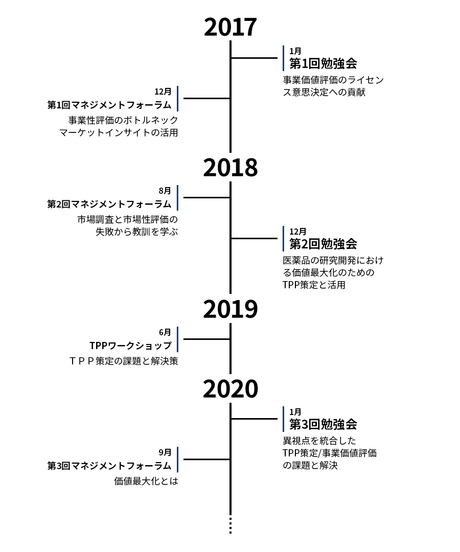 医薬品事業は、創薬から事業化までの長い道のりの中で、研究開発とビジネスのリスクと機会を見極めながら、多大な投資への高度な意思決定を行う事業モデルです。特に、日本発創薬をグローバルに研究開発、事業展開していくためには、事業価値最大化に向けての目利きや課題解決が求められています。